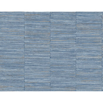 This abstract wallpaper offers a rich medley of color and texture. The columns of distressed blue are laced with lines of bright bronze, adding a splash of contrast to this movement-filled design. Jenga is an unpasted, vinyl wallpaper.