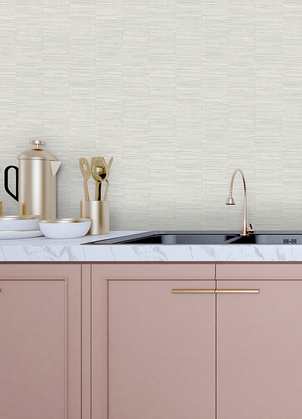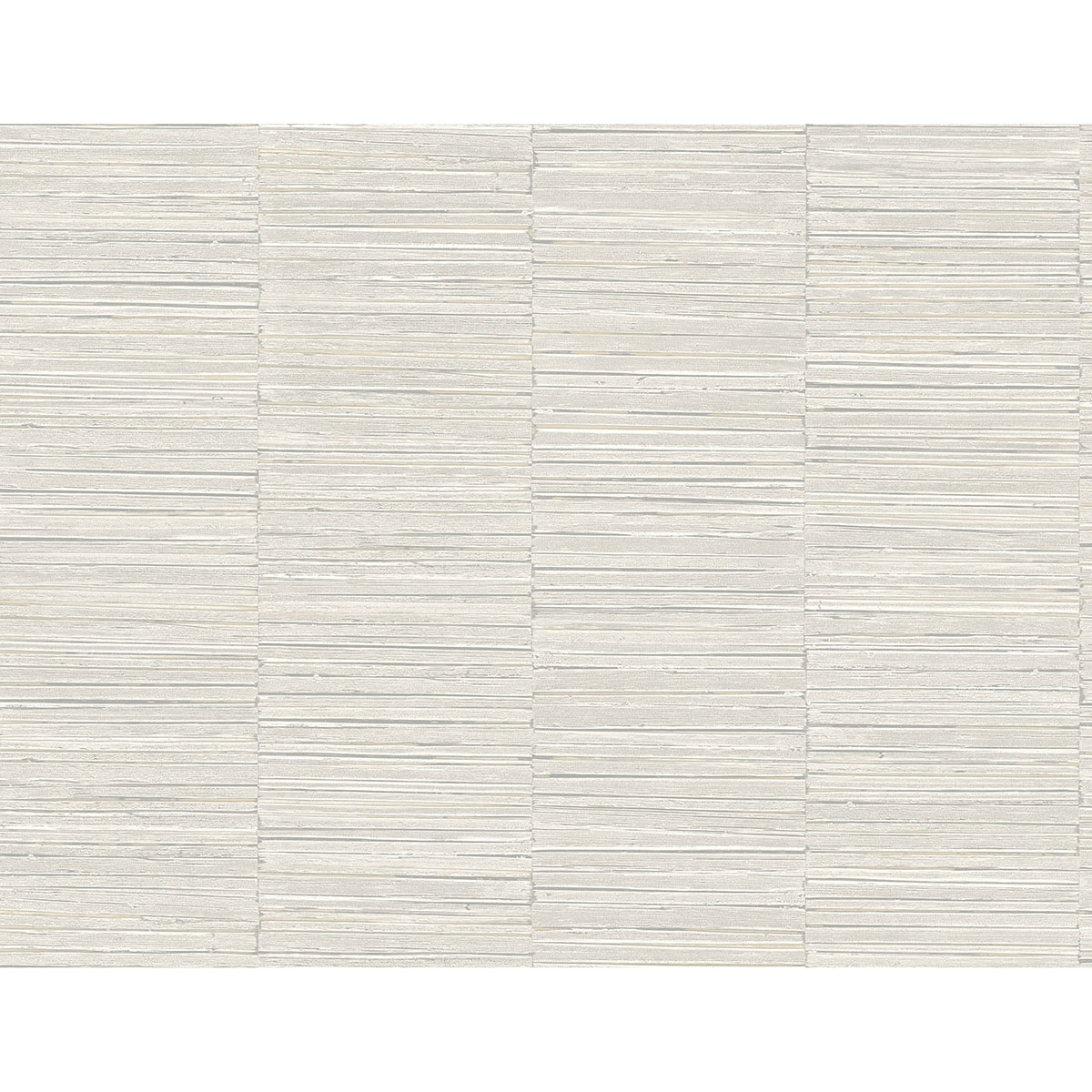 This abstract wallpaper will add dynamic, modern flair to your interiors. The distressed, light grey columns are intermittently laced with gold, adding a touch of brightness to this dimensional design. Jenga is an unpasted, vinyl wallpaper.