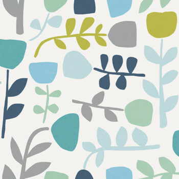 Bring cool hues and whimsical style to your walls with this Scandinavian-inspired botanical. Simplistic, block-printed florals are inked in cool blues, greens, and greys against a white backdrop. Juni is an unpasted, non woven wallpaper.