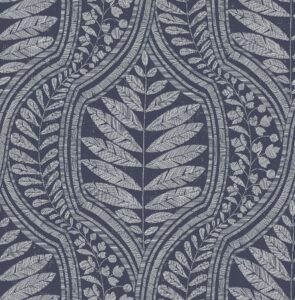 An enchanting design reflecting nature’s beauty, this Scandinavian pattern is perfect for any room. A rich blue backdrop and flowing ogee print emit a calming energy. Juno is an unpasted, non-woven wallpaper.