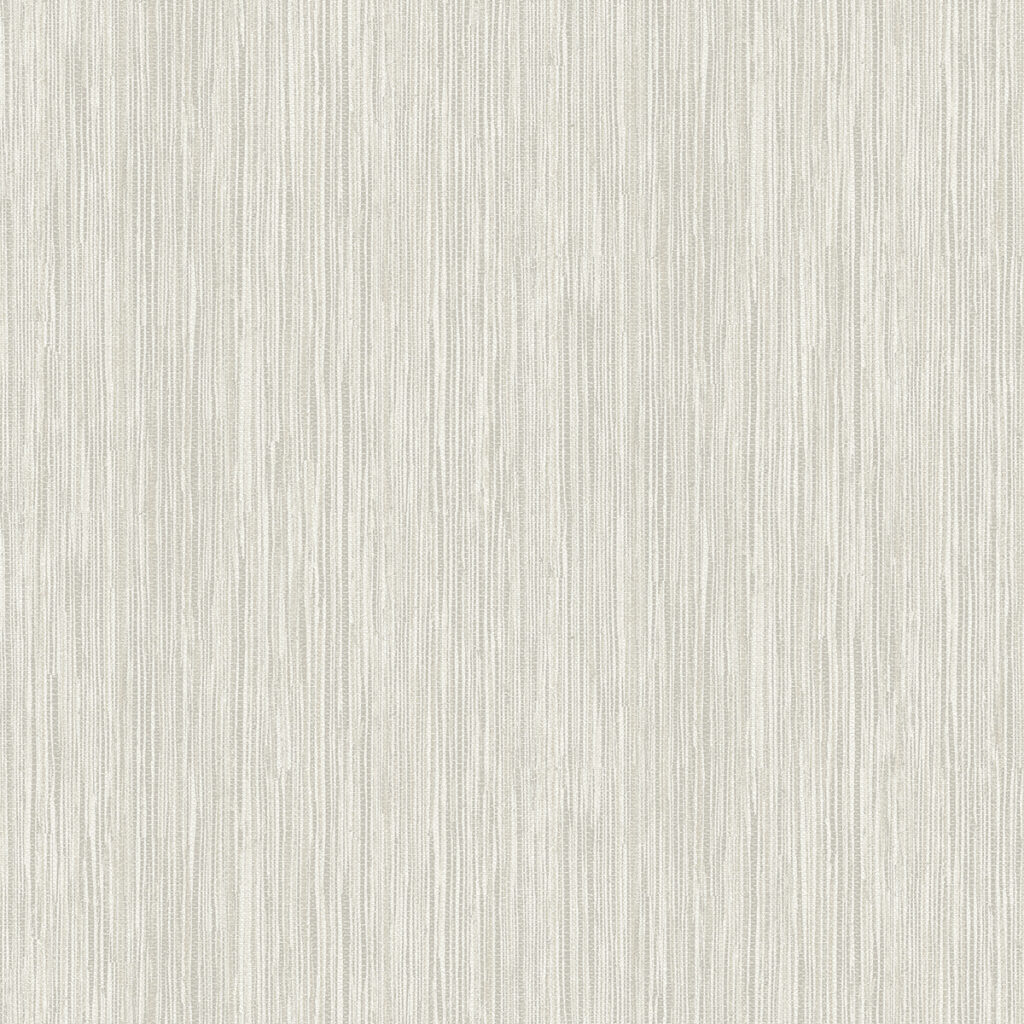 Add subtle depth to white walls with this creamy faux grasscloth wallpaper. The vertical strips are a gentle blend of white, silver, grey and golden beige accented by raised ink stitching. Justina is an unpasted, non woven backed vinyl wallpaper.