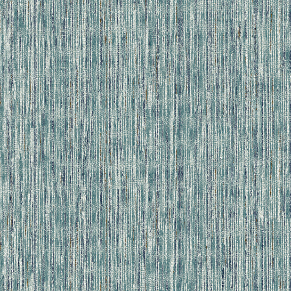 Enjoy vibrant color and depth with this teal faux grasscloth wallpaper! The blend of seafoam, teal, navy and gold strips makes for a dynamic and sophisticated backdrop. Justina is an unpasted, non woven backed vinyl wallpaper.