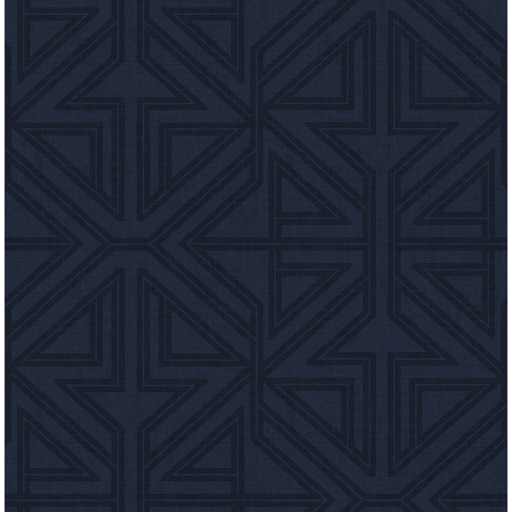Create a glamorous and moody space with this geometric design. Deep blue linework against rich indigo is luxurious and timeless. Kachel is an unpasted, non woven wallpaper.