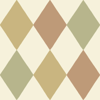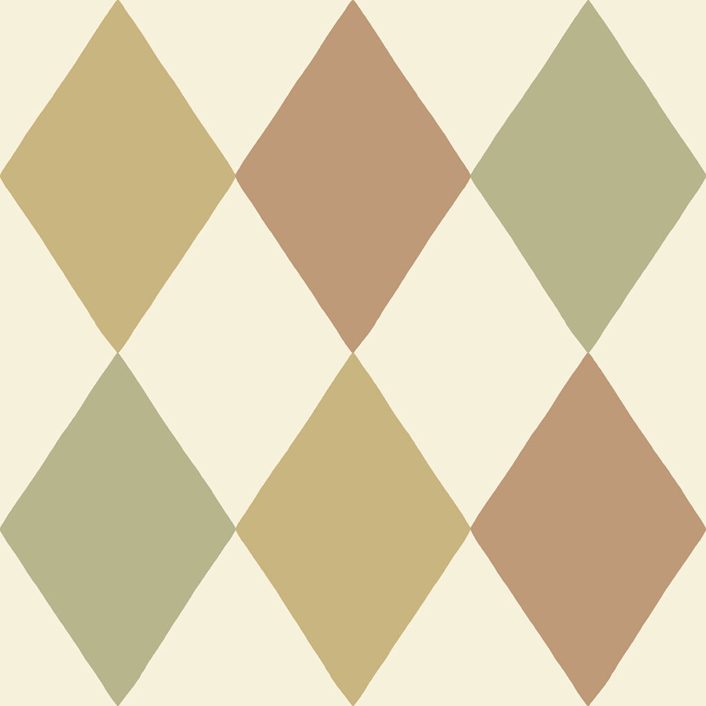 Add warmth and simple elegance to your walls with this diamond wallpaper. The hand-drawn shapes feature an autumnal palette of moss green, golden mustard, burnt orange, and cream. Kalas is an unpasted, non woven wallpaper.