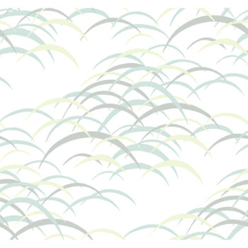 Create a tranquil space enlivened by artistic flair with this abstract wallpaper. Crescents of sage green, pale teal, and grey overlap and create the illusion of an abstracted hillside along a white backdrop. Kasia is an unpasted, non woven wallpaper.