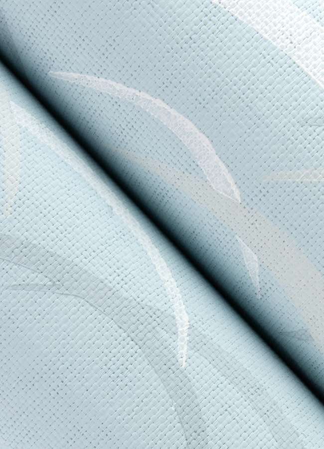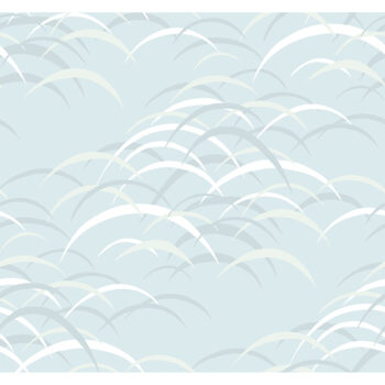 Airy and inviting, this abstract wallpaper brings artistic interest to your interiors. Layers of white, light grey, and blue arches swoop across a sky blue backdrop. Kasia is an unpasted, non woven wallpaper.