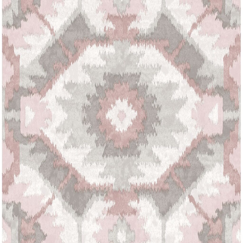 Bohemian with a southwestern flair, this shibori wallpaper is simply beautiful. Light grey, pink and taupe hues add a softness to dazzling geometric pattern. Kazac is an unpasted, non woven wallpaper.