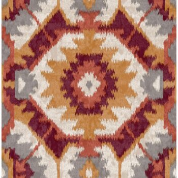Make a bold statement with this stunning wallpaper. Its shibori design pops with red, orange and slate hues. Kazac is an unpasted, non woven wallpaper.