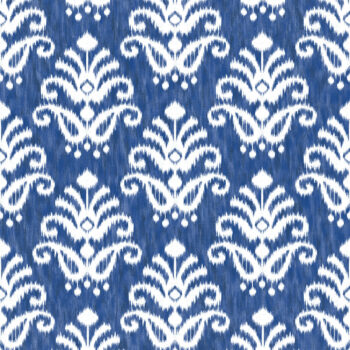 Create a chic, energy-filled space with this stunning medallion wallpaper. The bohemian design features white ikat medallions with an abstracted botanical design against a variegated blue backdrop. Keaton is an unpasted, non woven wallpaper.