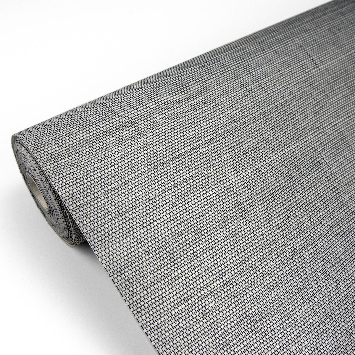 A beautiful grasscloth print featuring grey and black fibers. Glazed with a subtle metallic finish, this woven wallpaper has an understated elegance. Khuri is an unpasted, grasscloth wallpaper.