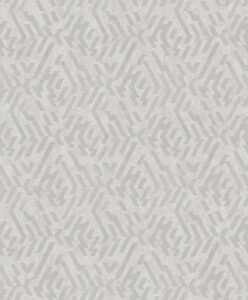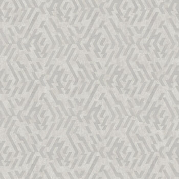 Bring modern sophistication to your space with this geometric wallpaper. The cement-like mottled grey backdrop is covered with darker grey dashes finished with a silver sheen that form an abstract, diamond mosaic. Kila is an unpasted, non woven wallpaper.