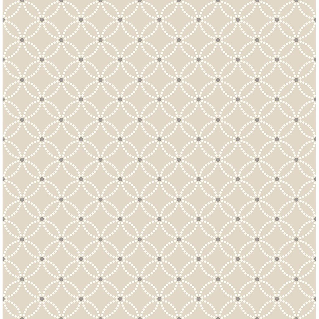 Featuring a small scale geometric resembling four point flowers, this exquisite wallpaper is a warm complement to décor with a touch of sparkle derived from metallic ink accents