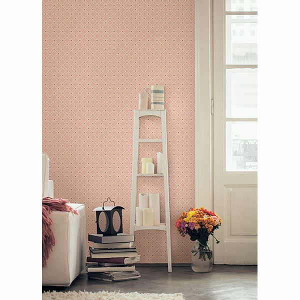 Fresh and pretty, this happy chic wallpaper makes a lovely entryway. A sweet salmon hue adorned in a chic geometric is both stylish and modern.