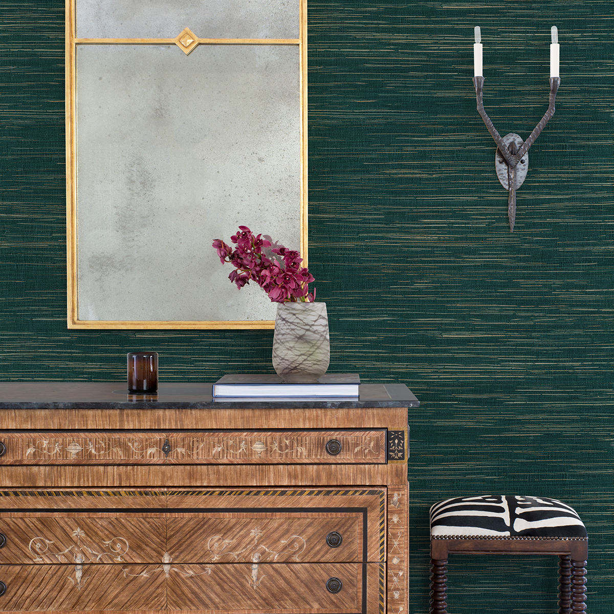 This modern hemp wallpaper is a dimensional, colorful delight. Its peacock palette features an array of teal, indigo, navy and aqua hues, the varying thickness of each strand giving the colors extra depth. Kira is an unpasted, hemp grasscloth wallpaper.