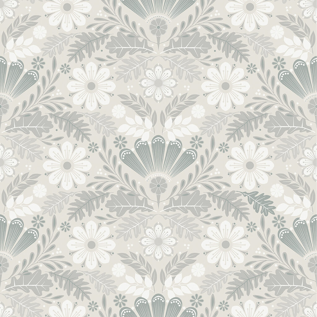 Klockrike Light Grey Botanical Damask Wallpaper