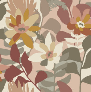 Bring natural serenity to your interiors with this gorgeous floral wallpaper. This large-scale design features artistically-styled flowers and botanical accents in a range of warm pinks, ochre, and neutral hues. Koko is an unpasted, non woven wallpaper.