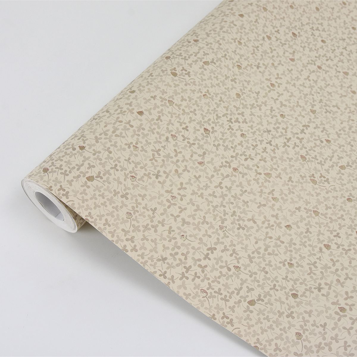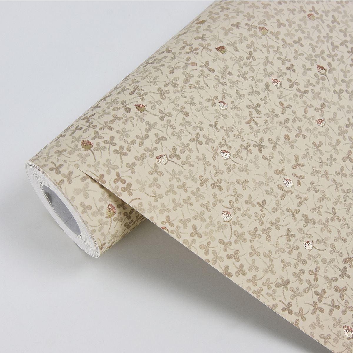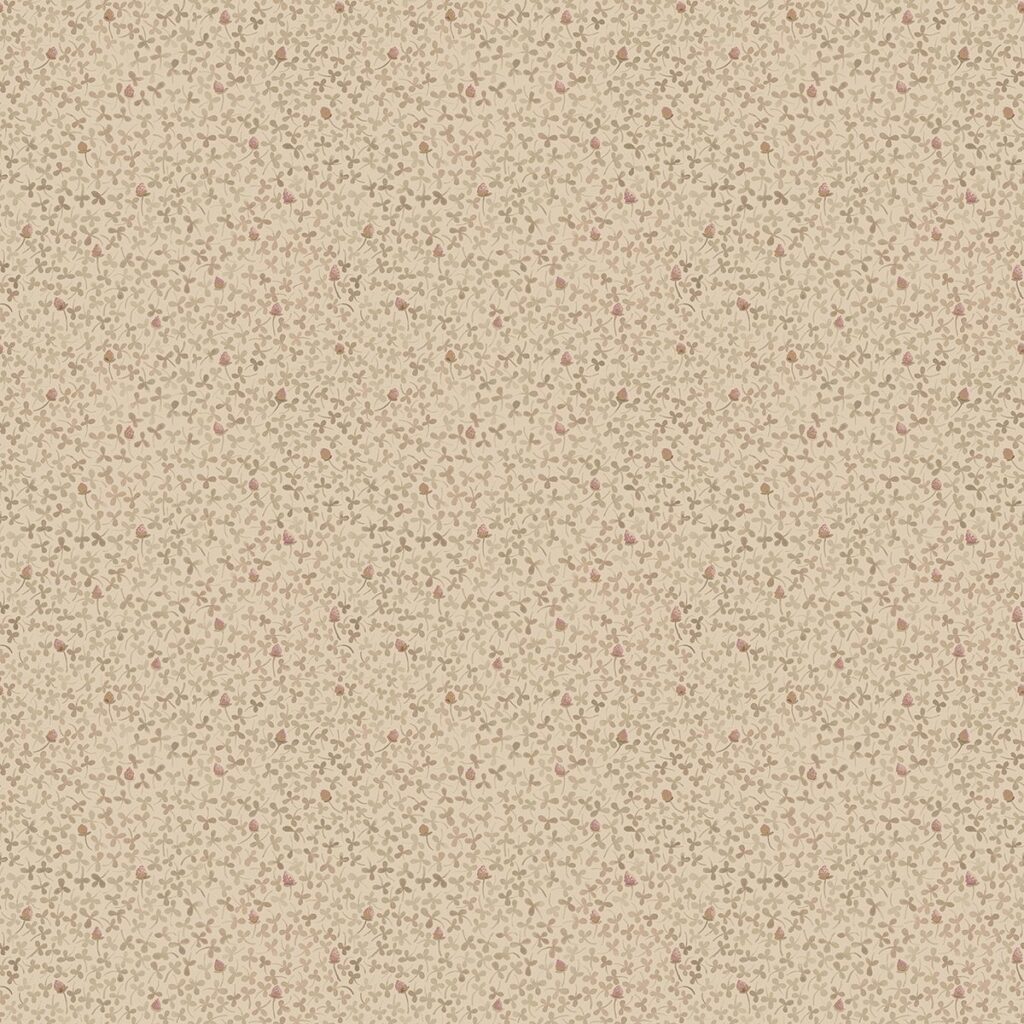 Minatare taupe clovers twirl about a rich beige background in this nature inspired wallpaper. Gold highlights are balanced by weathered accents. Lark is an unpasted, non woven wallpaper.