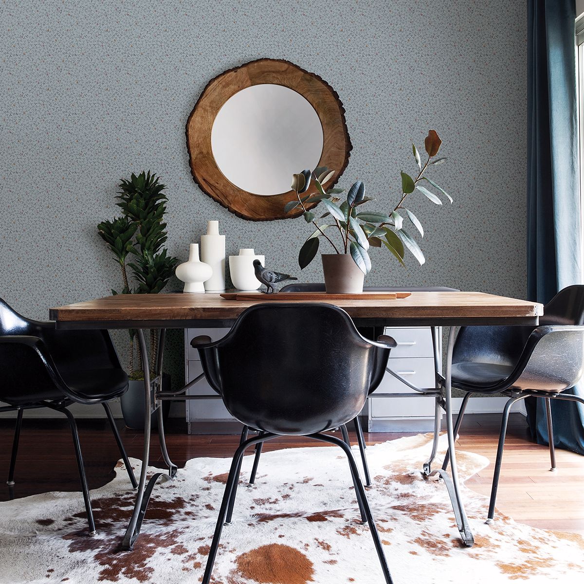 Add a whimsical charm to rooms with this light blue clover wallpaper. Its miniature botanical print is accented by copper highlights and weathered accents. Lark is an unpasted, non woven wallpaper.