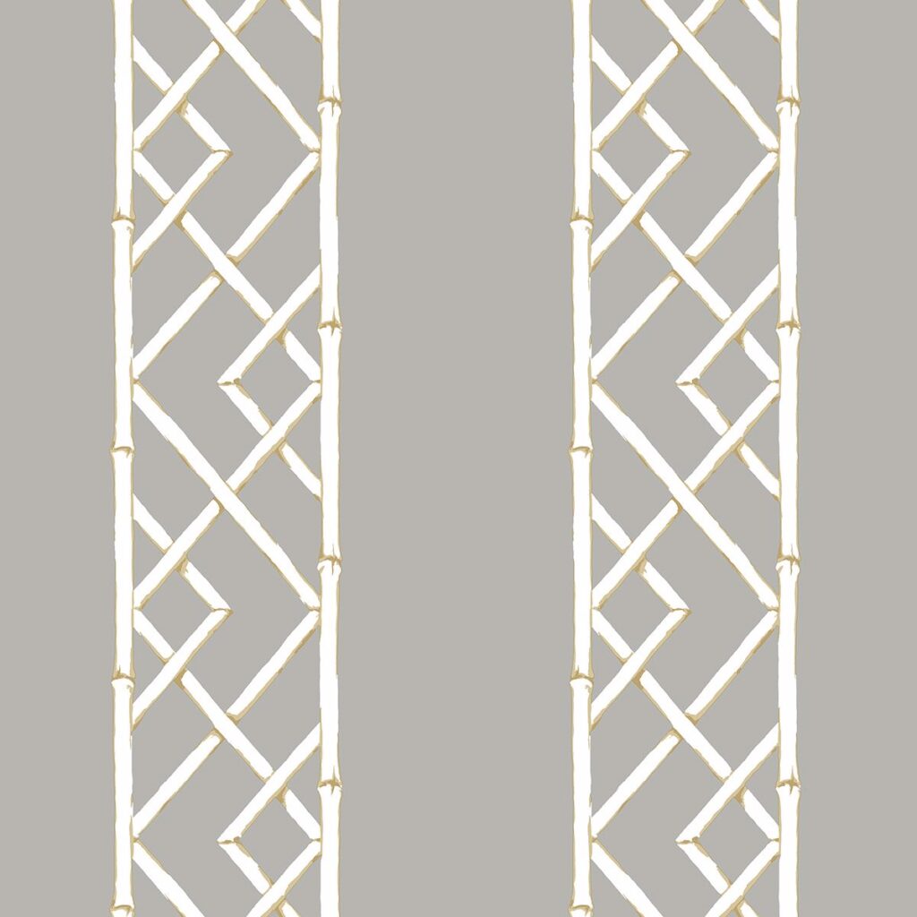 Mica-infused ink accents add flashes of shine to this trellis stripe pattern for a traditional look with contemporary influence. The subtle yellow adds an unexpected but delightful pop to the grey wallpaper. Latticework is an unpasted, nonwoven wallpaper.