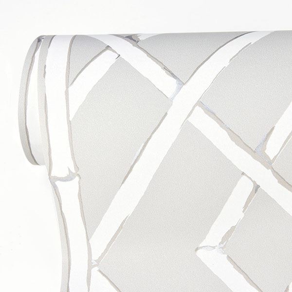 Mica-infused ink accents add flashes of shine to this trellis stripe pattern for a traditional look with contemporary influence. The warm grey color is inviting and easy to incorporate into a room’s design. Latticework is an unpasted, nonwoven wallpaper.