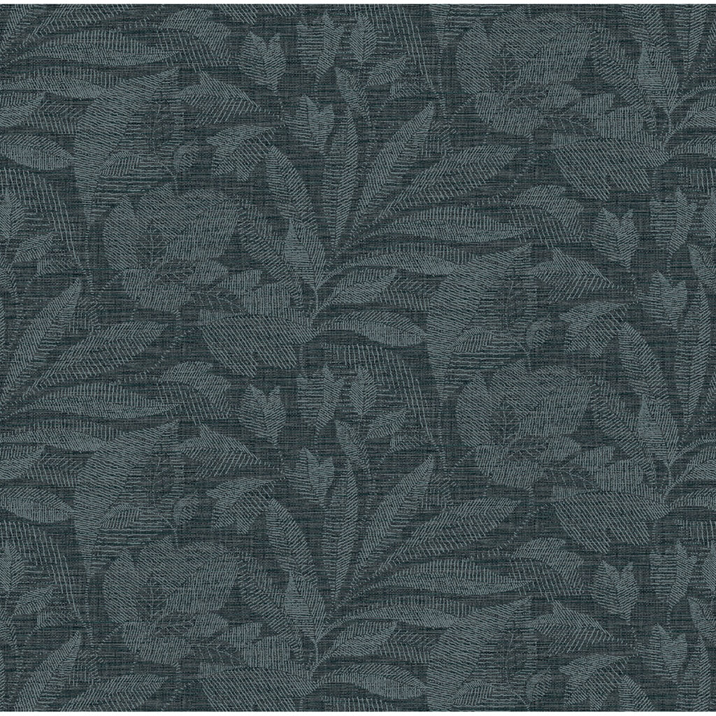 Bring cool, earthen sophistication to your walls with this botanical wallpaper. The variegated indigo backdrop looks like fabric and is overlaid with simple lined outlines of leaves in light blue. Lei is an unpasted, vinyl wallpaper.