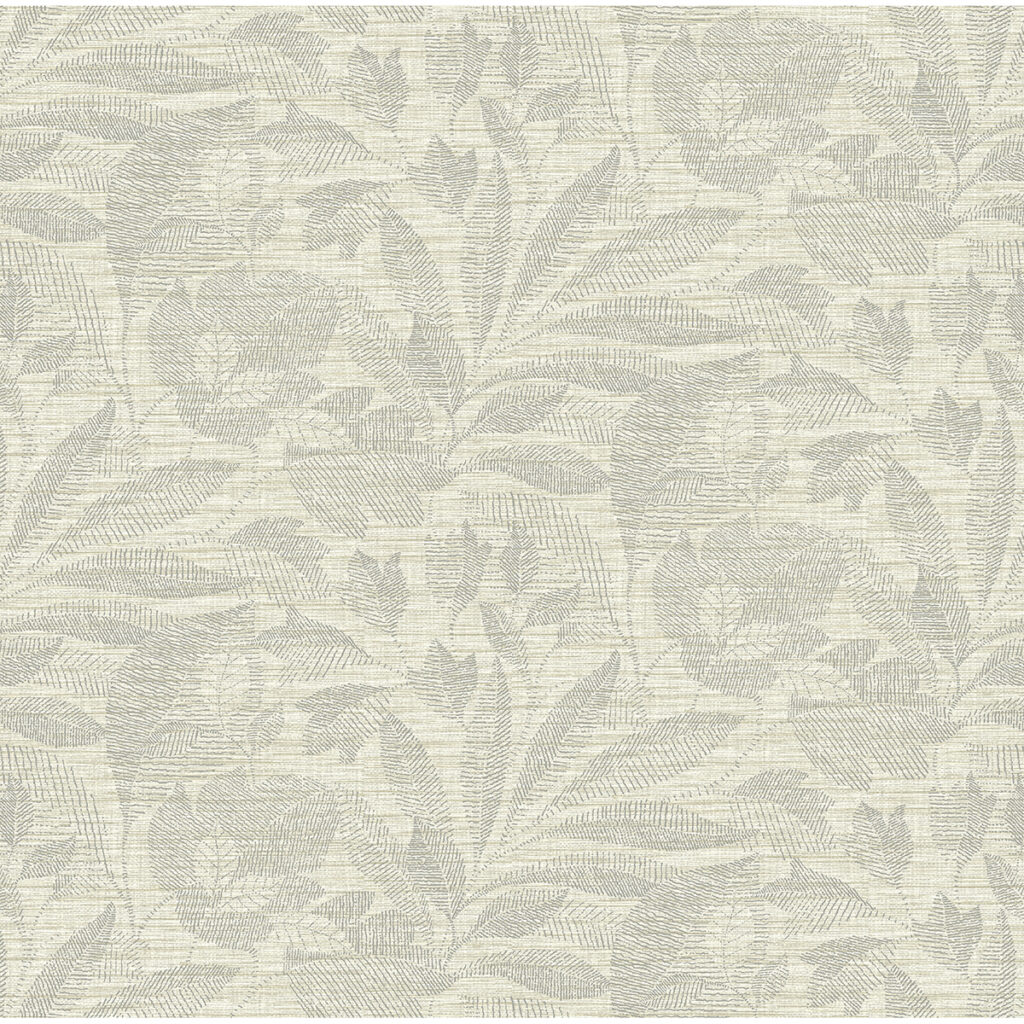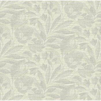 Elevate your interiors with the earthen elegance of this botanical wallpaper. Silverly leaves are sparsely illustrated with thin lines against a variegated cream backdrop that looks like linen. Lei is an unpasted, vinyl wallpaper.