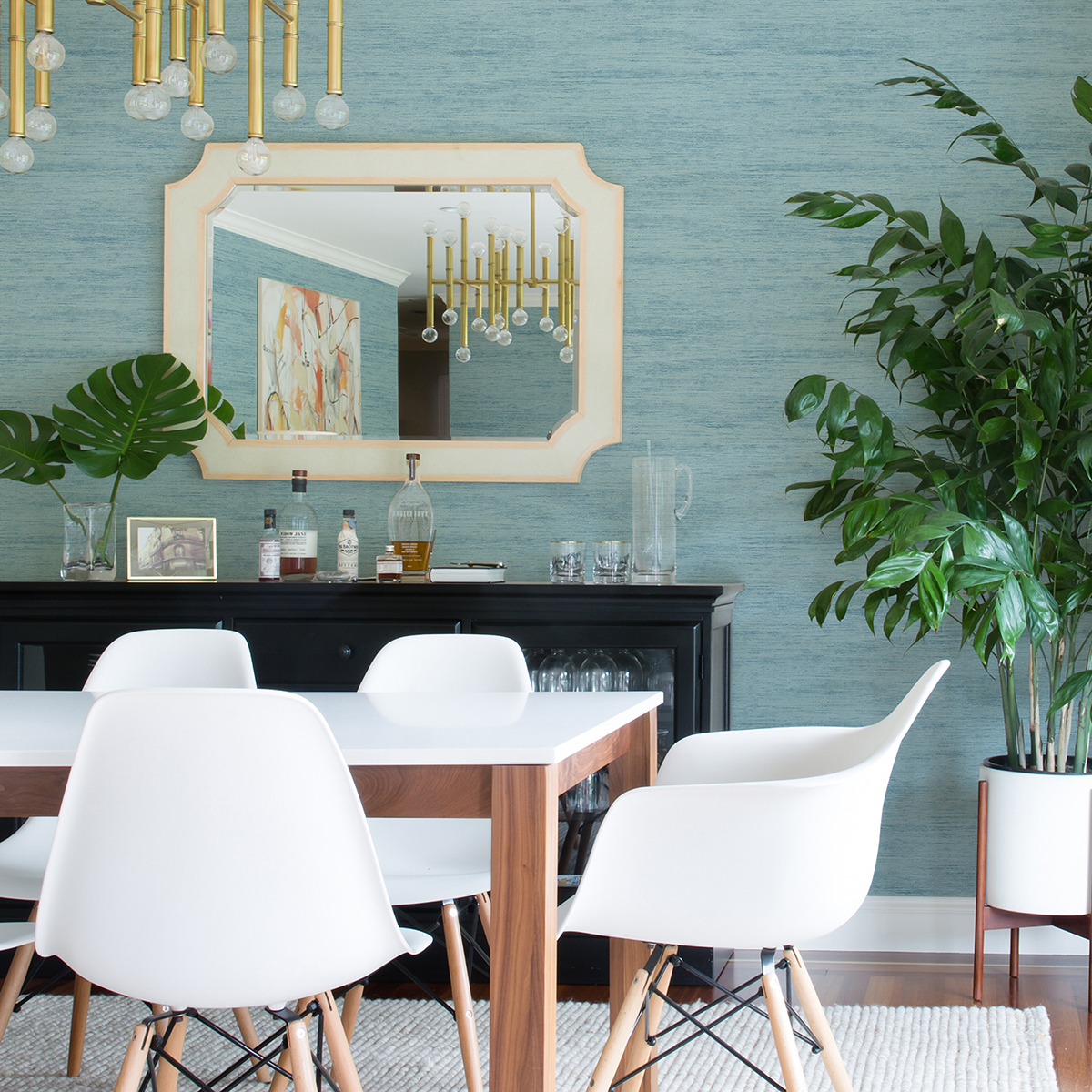 Give your walls subtle flair with faux fabric wallpaper. Aqua blue is streaked with darker blue and accented with a subtle icy shimmer. Lindsay is an unpasted, non woven backed vinyl wallpaper.