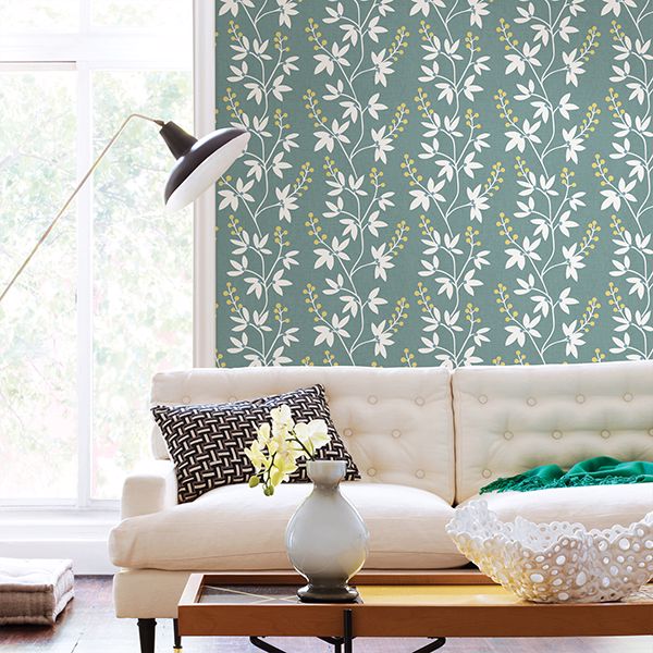 Linnea Elsa Teal Botanical Trail Wallpaper