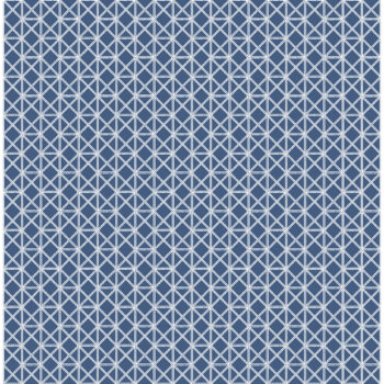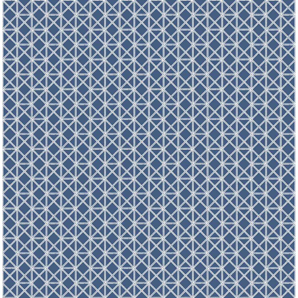 Thin white rods are woven together across a cool blue backdrop, forming an intricate pattern of squares and triangles. This wallpaper is a perfect accent for coastal designs. Lisbeth is an unpasted, non woven wallpaper.