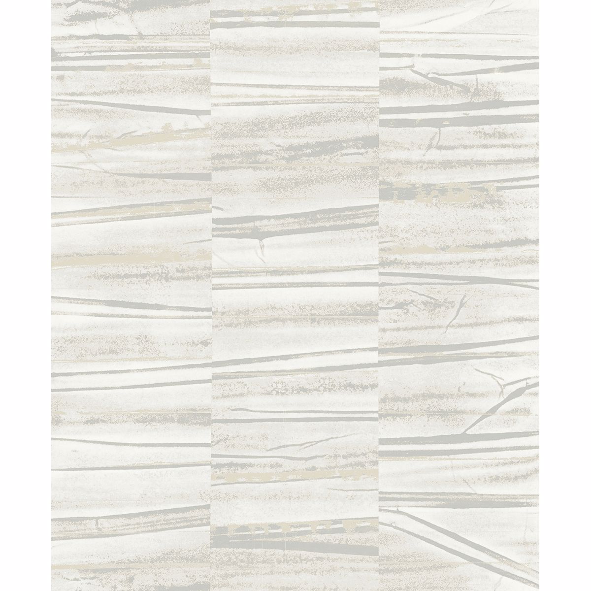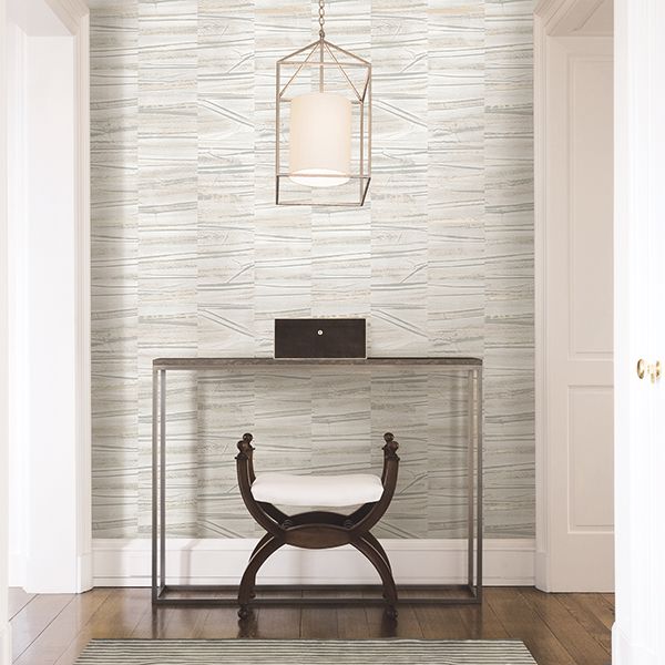 A block pattern adds a contemporary touch to this marble inspired design. Its heavily textured light grey design is accented by distressed details and gold highlights. Lithos is an unpasted, non woven wallpaper.