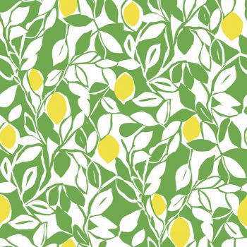 A bold take on a classic theme, this citrus wallpaper is sure to brighten your home. Branches laden with ripe lemons are formed by an interplay of bright green and white negative space. Loretto is an unpasted, non woven wallpaper.