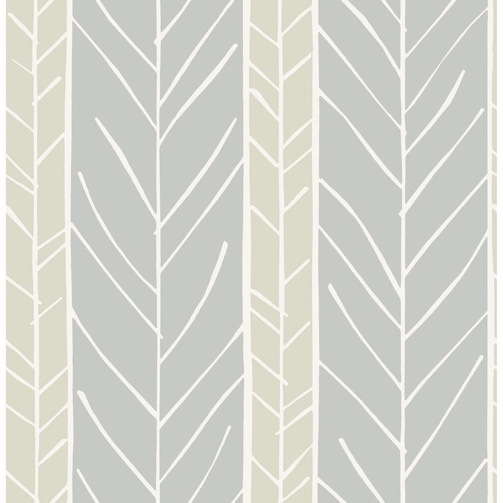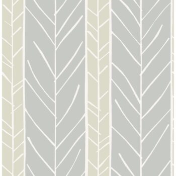 Eclectic and chic, this wallpaper features alternating grey and sage stripes. Its painterly design is complete with slender white geometrics. Lottie is an unpasted, non woven wallpaper.