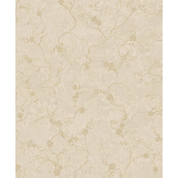 Delicate and refined, this elegant trail wallpaper will instantly elevate the styling of your space. Spindly floral vines are silhouetted in metallic gold along a warm taupe backdrop with plaster-like detailing. Mahina is an unpasted, non woven wallpaper.