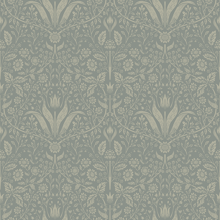 This charming ogee wallpaper is designed with spring’s first flowers! Tulips, daises, and other early bloomers are delicately illustrated in sage against a darker green backdrop. Mara is an unpasted, non woven wallpaper measuring 20.9 inches wide by 33 feet long, covering approxiamately About 57.5 square feet square feet per roll