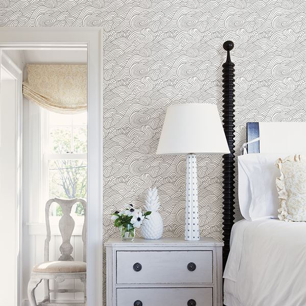 Ride into style with this grey wave wallpaper. The grey and white print is modern and intricate.