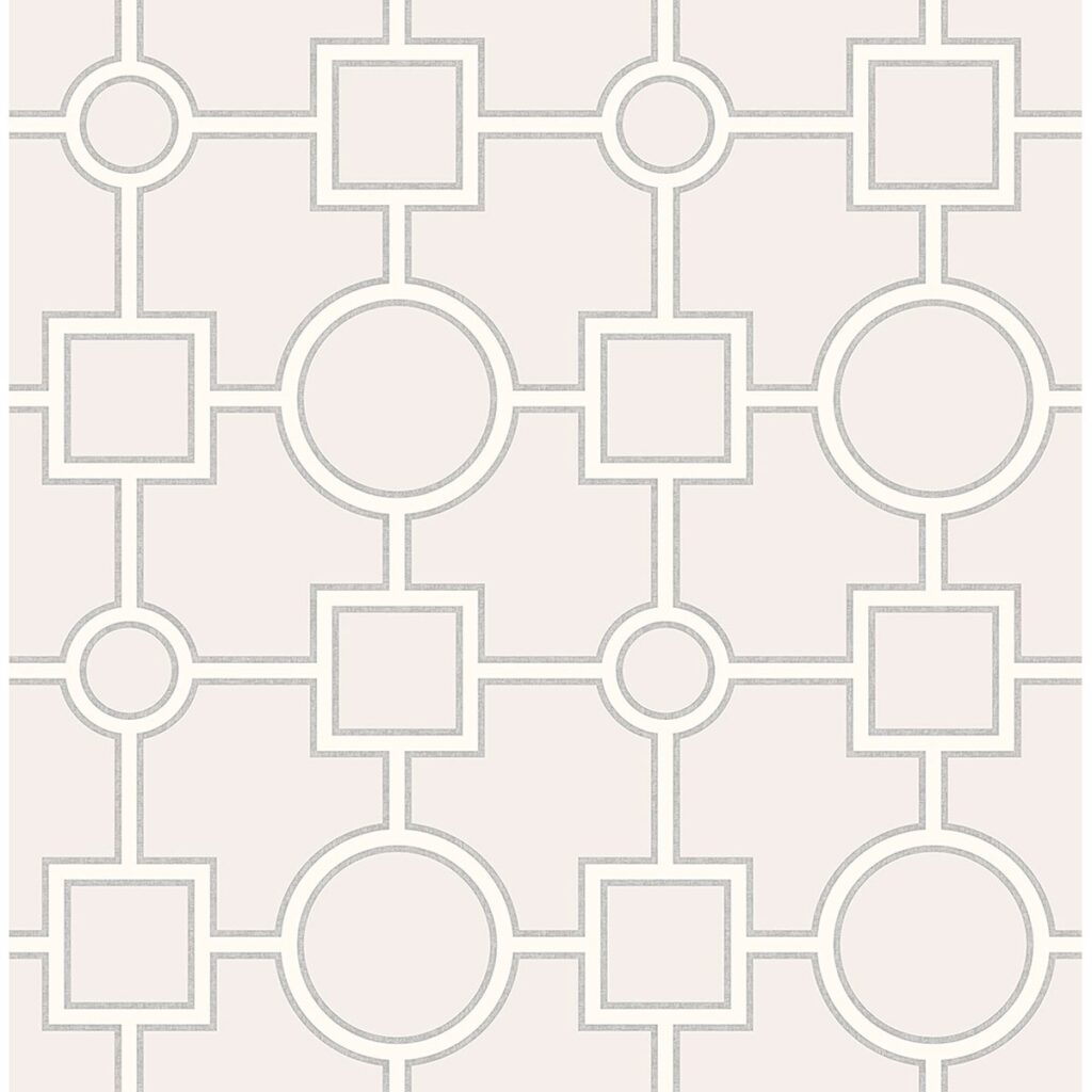 Classy and sophisticated, this contemporary wallcovering creates a dazzling entrance. Outlined in a silver metallic ink, this architectural geometric radiates from afar giving your room a pleasing glow.