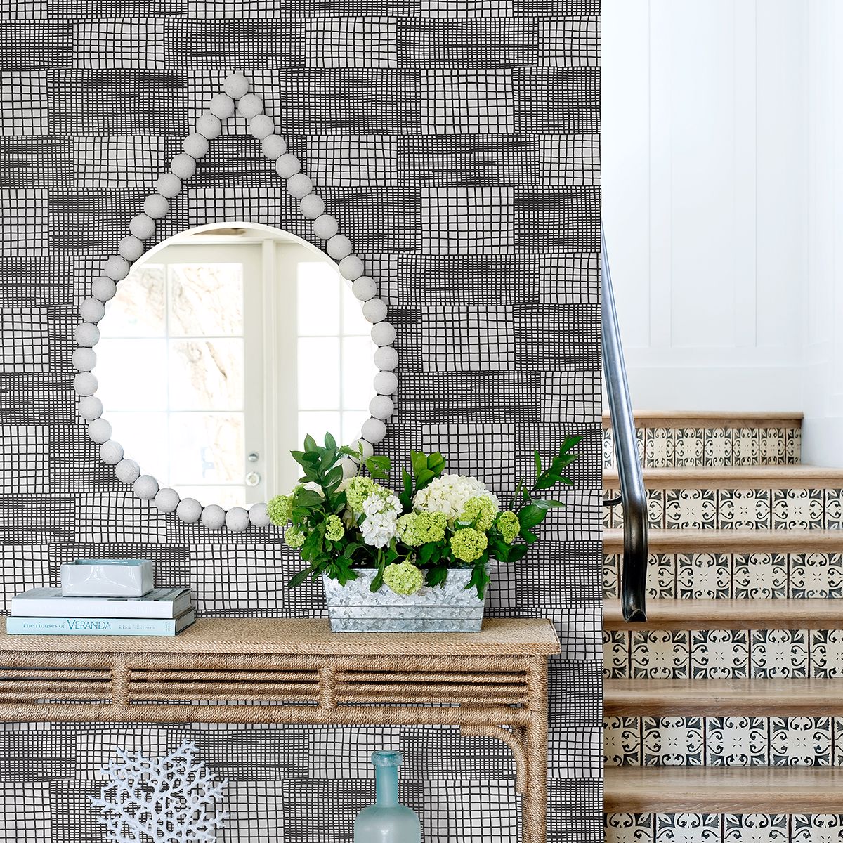 Perfect for the contemporary home, this geometric print has a timeless palette of black and white hues. Hundreds of intersecting lines come together to create is abstract, checkered print. Maxwell is an unpasted, non woven wallpaper.