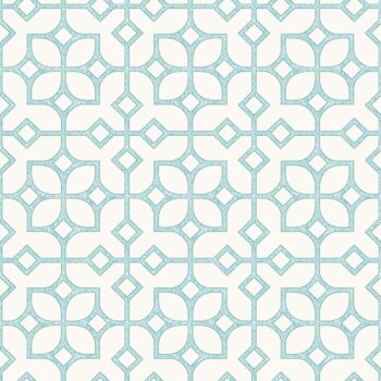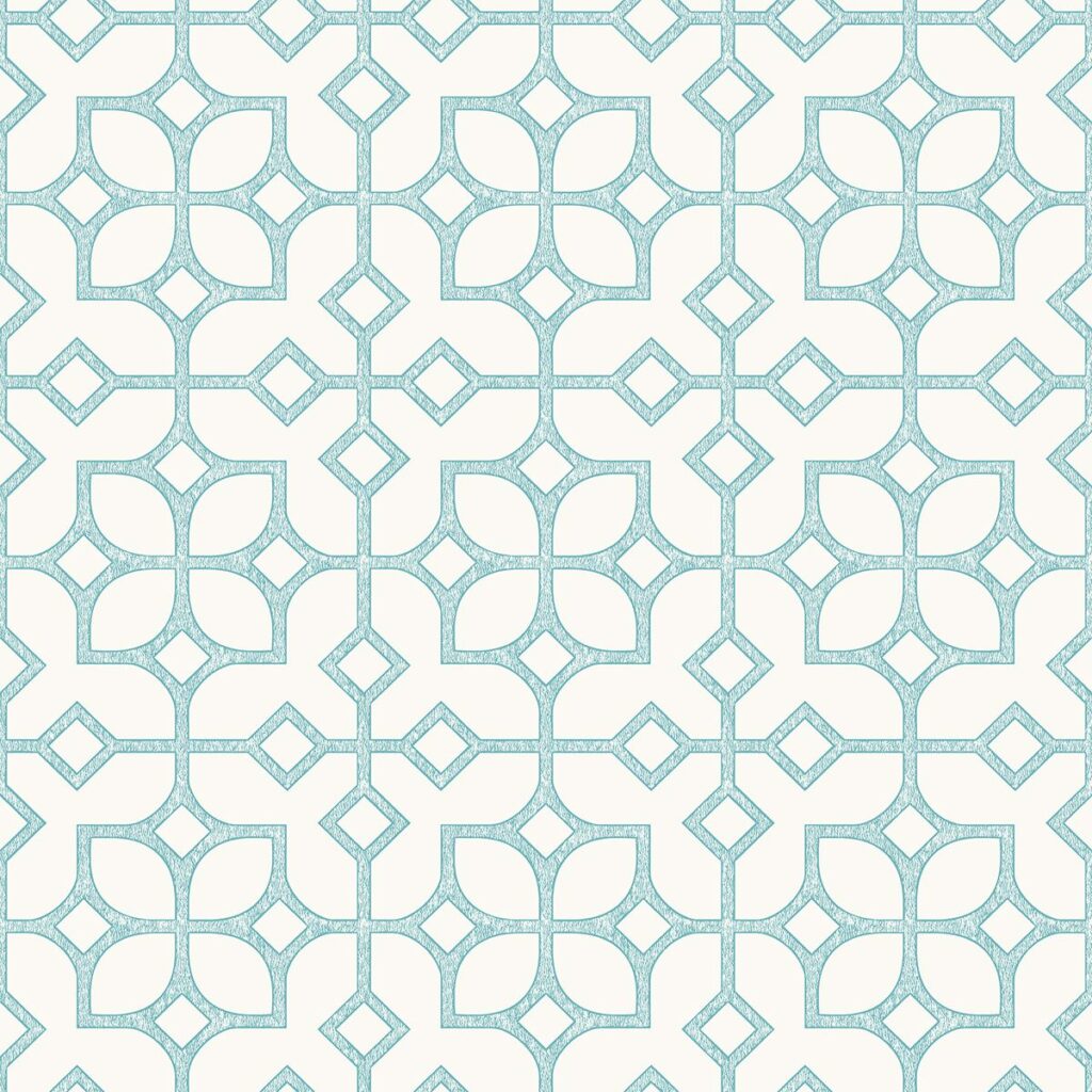 This Chinese lattice inspired wallpaper has a beautiful turquoise blue print. A surface print texture adds a luxurious effect. The pattern has a mixture of floral and geometric prints that are modern and stylish.