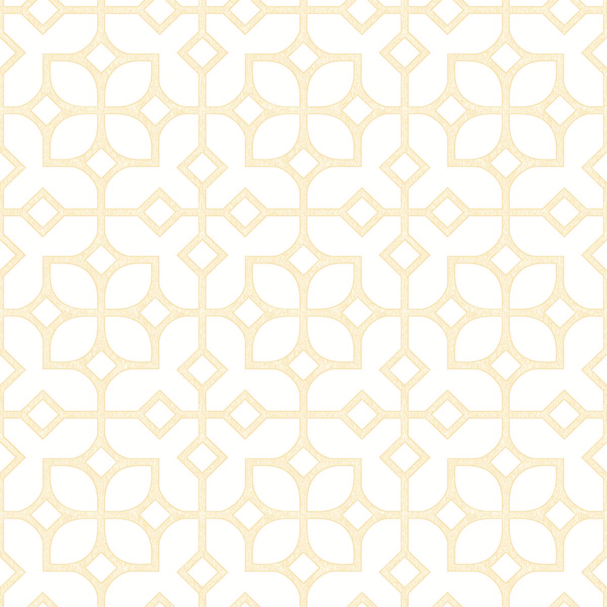 This beautiful buttercup colored wallpaper is bright and sunny. A Chinese lattice inspired print combines floral and geometric shapes for a fresh approach to design.