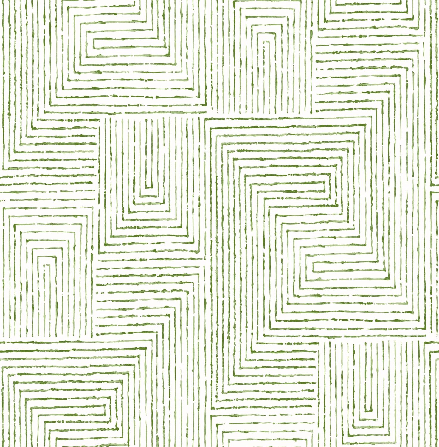 This geometric design has a dimensional look, complete with raised inks. An organic green hue adds a refreshing touch. Merritt is an unpasted, non-woven wallpaper.