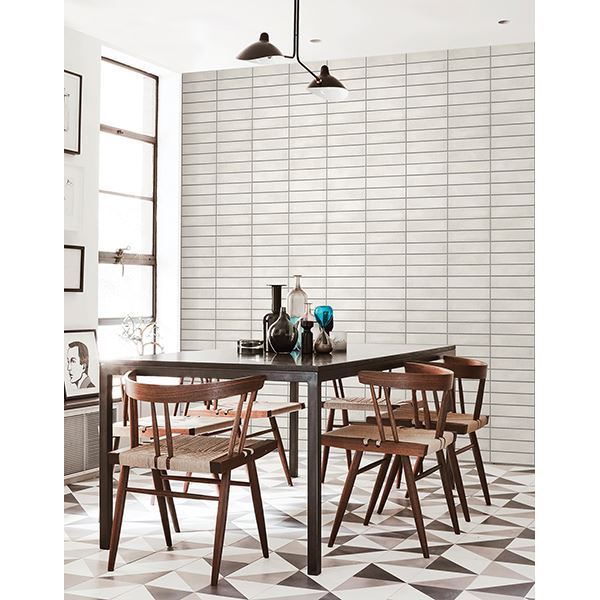 This faux brick wallpaper creates a simple but stately facade. The white blocks have a mottled grey texture printed in raised inks for realistic detail. An easy way to get the midcentury modern look in your home.