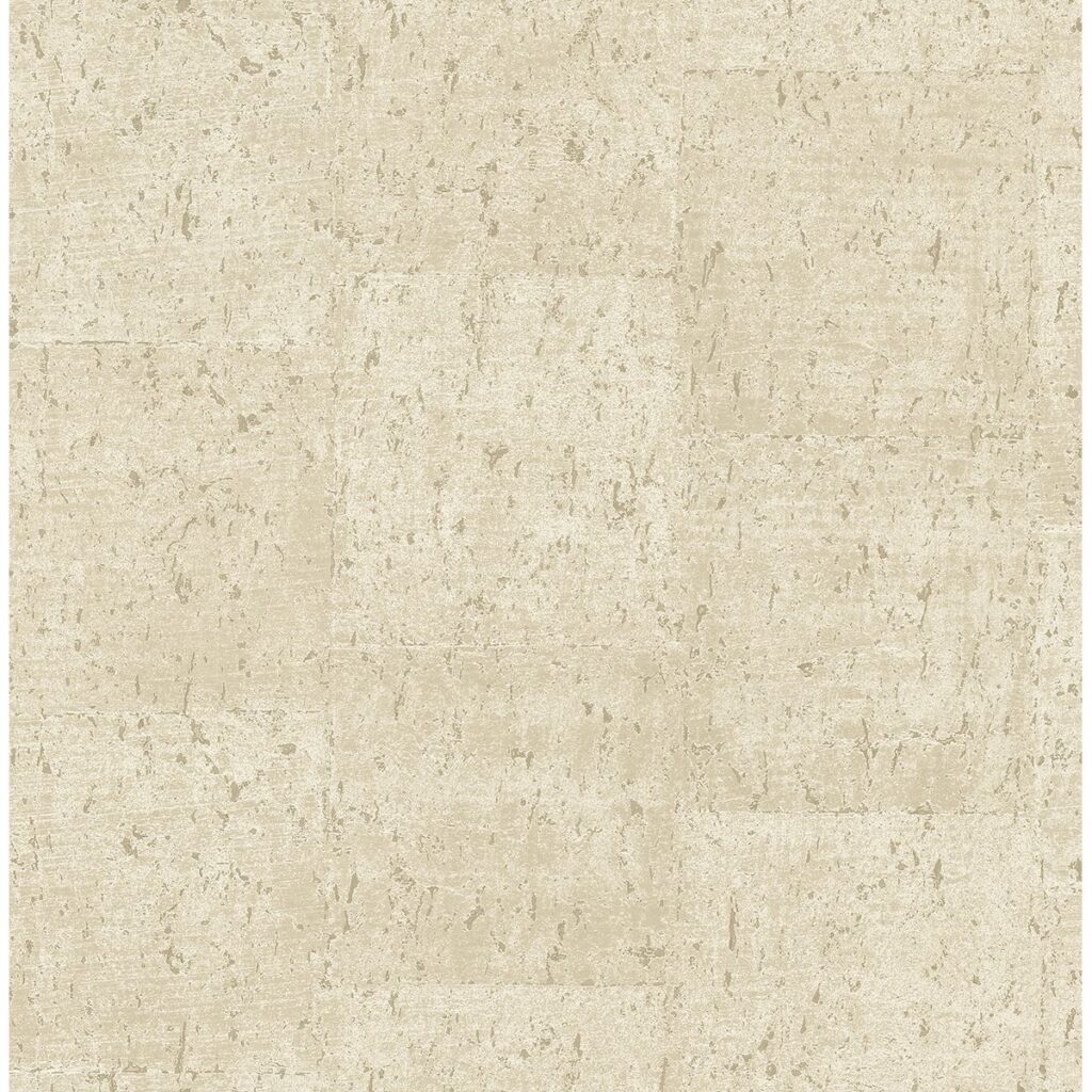 Featuring a subtle block pattern, this concrete inspired wallpaper has an industrial chic look. Shimmering gold details add warmth to its beige, distressed design. Millau is an unpasted, non woven wallpaper.