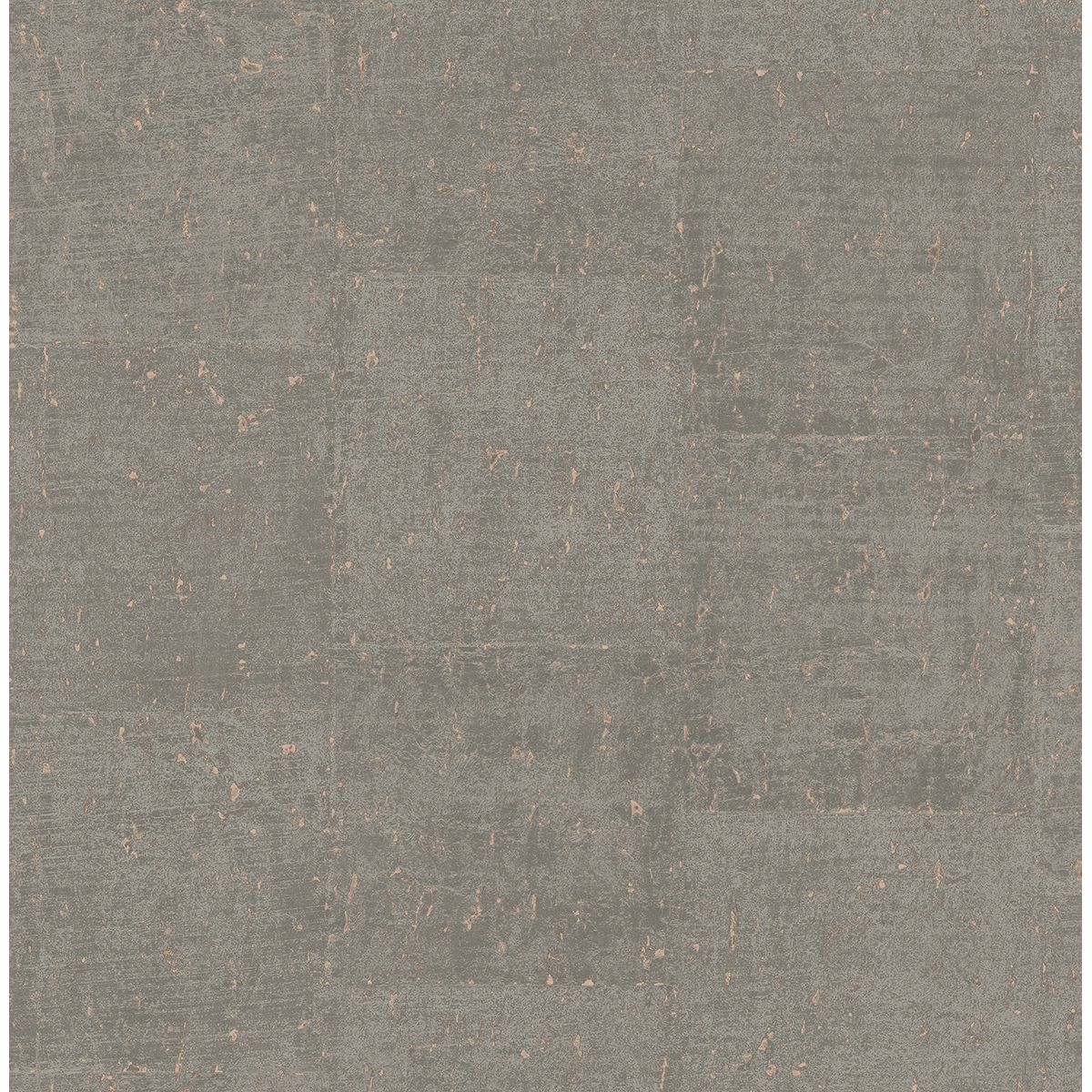 Complete with a mottled design and textured elements, this dimensional taupe wallpaper has the look of concrete. Shimmering bronze accents light up its subtle block pattern. Millau is an unpasted, non woven wallpaper.