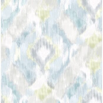 Adorn your walls in a stunning watercolor wash with this abstract ogee pattern. Soft teals, blues, greys, and chartreuse blend harmoniously together. Mirage is an unpasted, nonwoven wallpaper.
