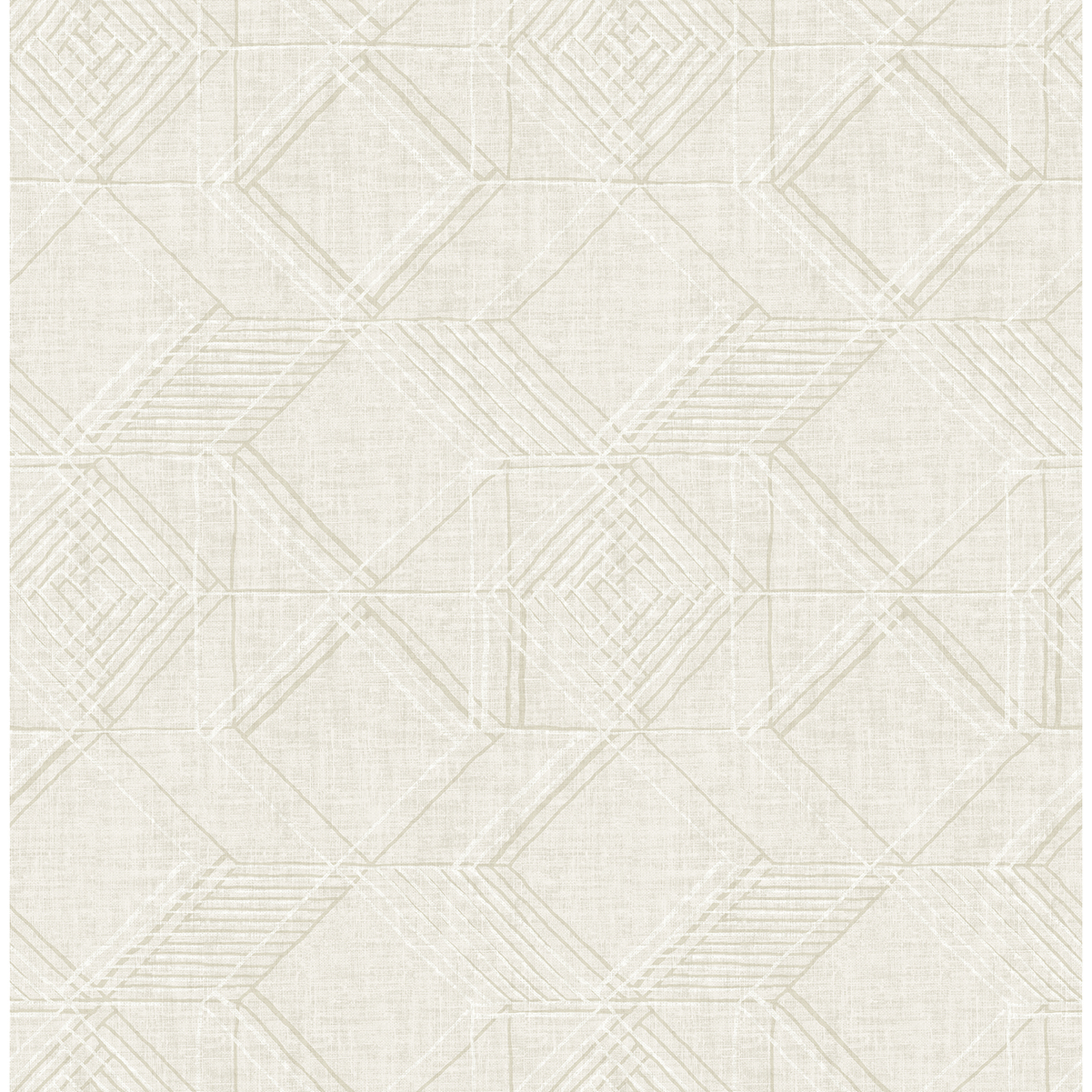 Warm neutrals are elevated with dimensional details in this contemporary geometric wallpaper. Intricate lattice work – drawn in raised inks first in white and again in khaki – provide a tactile, 3D effect. An off-white, faux linen background adds an additional layer of subtle embellishment. Moki is an unpasted, non woven wallpaper.