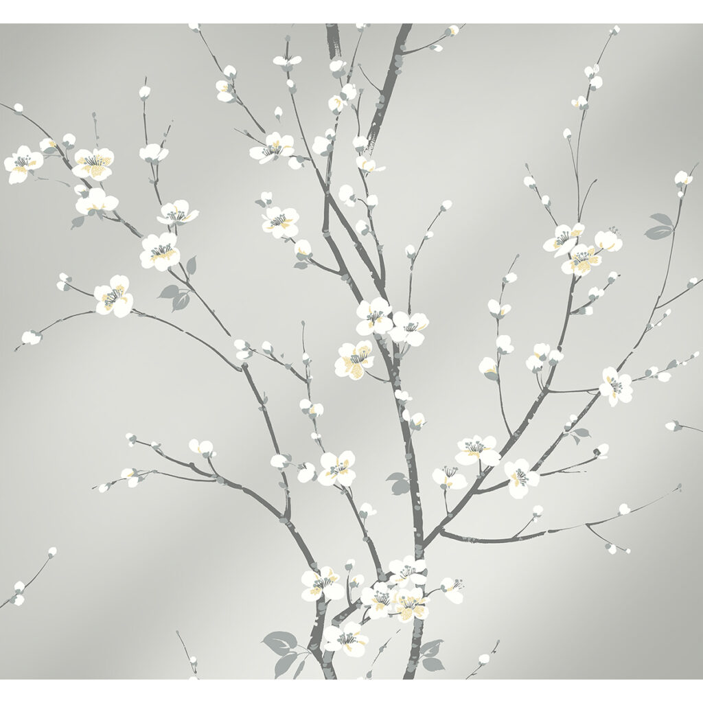 Bring simple elegance to your home with this floral wallpaper. Delicate white buds burst open along thin grey branches against a silvery grey background. Monterey is an unpasted, screen acrylic coated wallpaper.