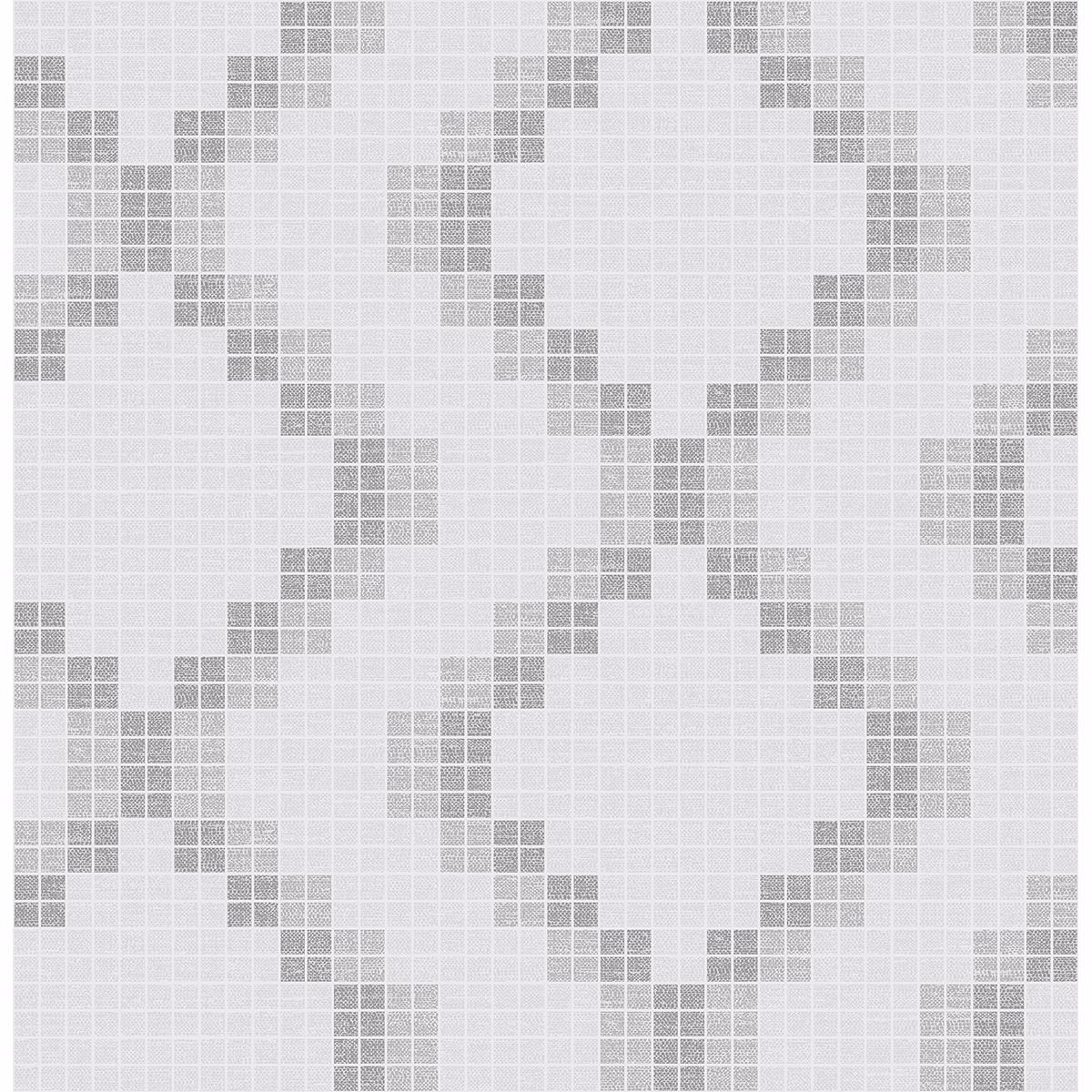 Add a fresh look to your walls with this diamond grid wallpaper. The geometric design uses shades of grey and pops of silver to create a modern look. The tonal design uses subtle contrast that makes a dramatic effect.