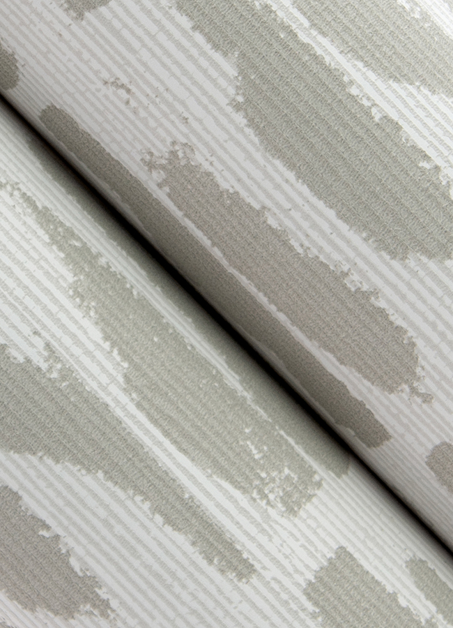 This energized abstract wallpaper has massive, modern appeal! The design features columns of free-form grey brushstrokes along a white backdrop, the entire surface elevated with lines of grey raised inks. Myrtle is an unpasted, non woven wallpaper.