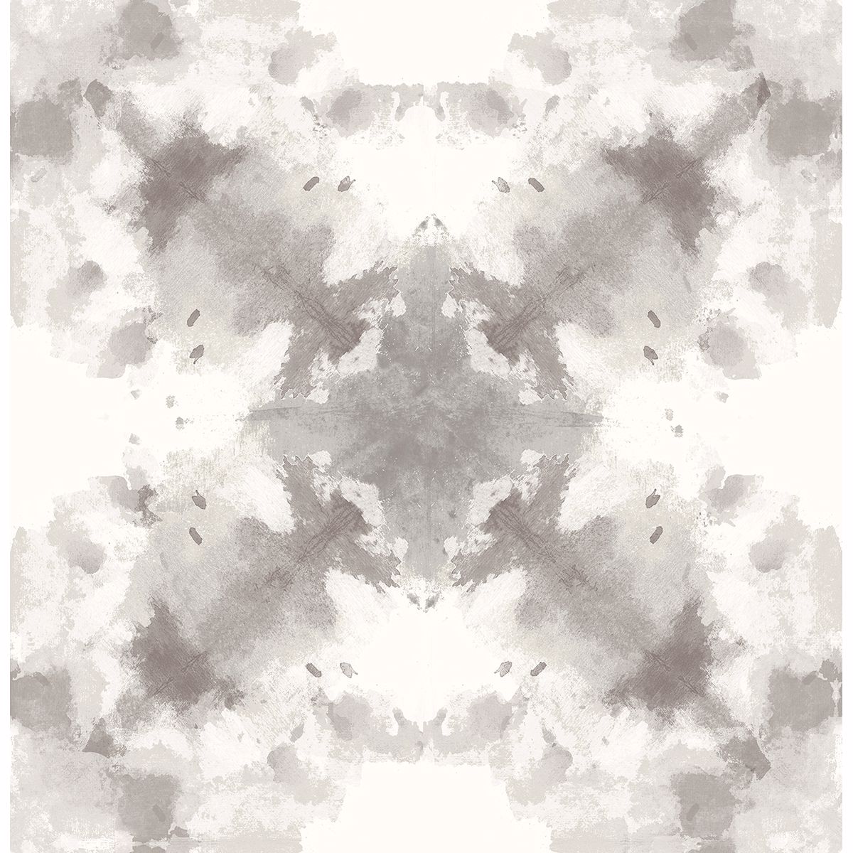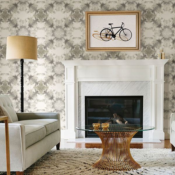 This wallpaper features a watercolor kaleidoscope pattern. The modern print is done in subdued taupes and greys. Mysterious is a non woven, unpasted wallpaper.