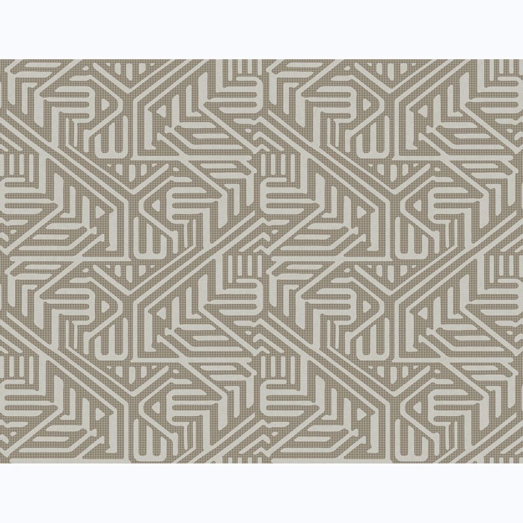 Add a global flair to rooms with this tribal inspired geometric. Grey and brown hues create a versatile palette, while heavily textured accents lend to its dimensional effect. Nambiti is an unpasted, fabric backed vinyl wallpaper.